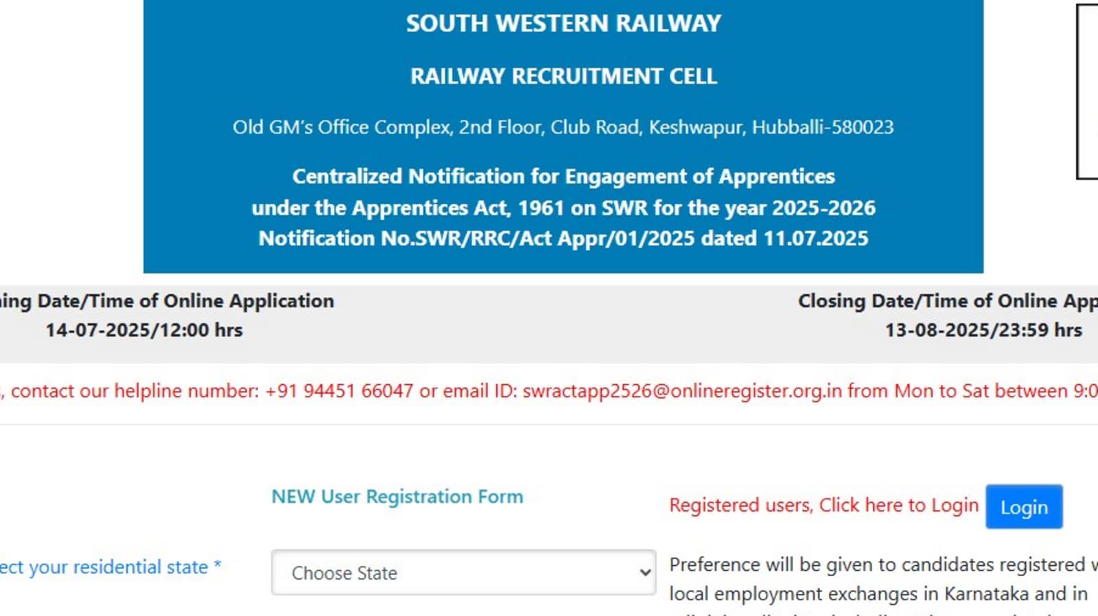Published on: Aug 13, 2025 12:28 pm IST South Western Railway Apprentice Recruitment 2025: The application window for 904 posts will be closing today at rrchubli.in. The direct link is given below.  South Western Railway will be closing the application window for 904 Apprentice posts on Wednesday, August 13, 2025. Eligible and interested candidates who … Read more