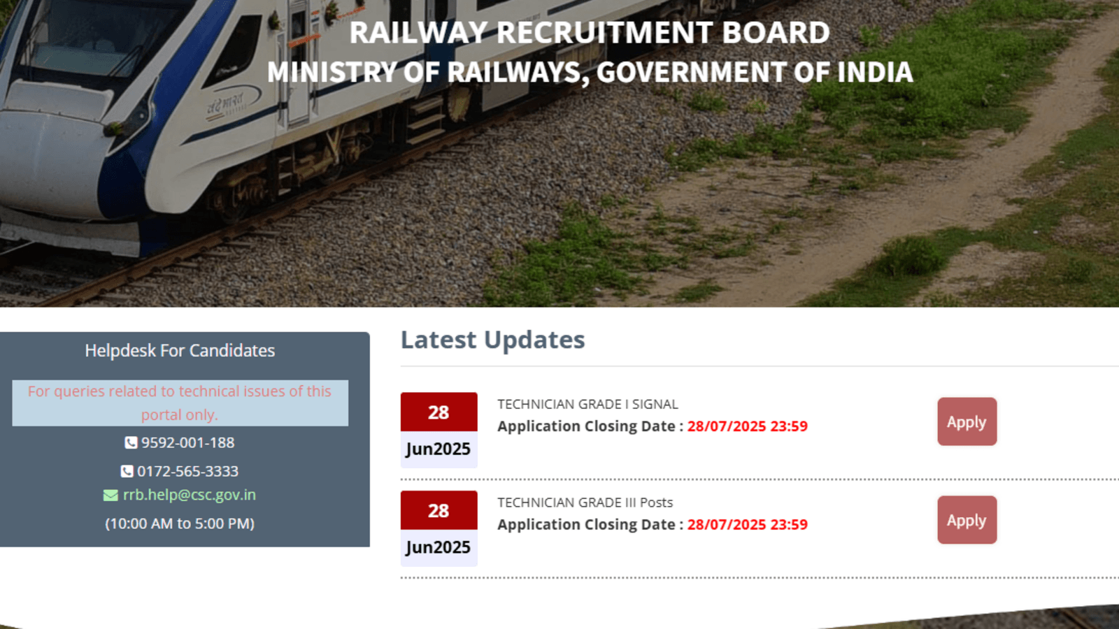 RRB Technician Recruitment 2025: Last date today to apply for 6238 posts, direct link here